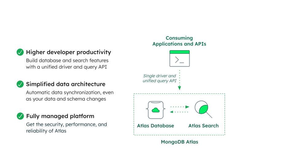 图3:在MongoDB Atlas中完全集成的数据库、同步和搜索实现了显著的架构简化